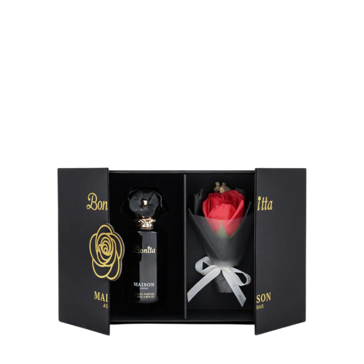 Descubre Bonita de Maison Asrar una fragancia Chipre Floral que combina frescura, dulzura y sofisticación en cada nota. La apertura de lirio de los valles, flor de azahar y pera da un primer toque fresco y delicado. Su corazón de café y jazmín aporta elegancia y profundidad, mientras que el fondo de vainilla y almizcle deja una estela cálida y duradera.Perfecta para mujeres que buscan un aroma distintivo y memorable.
